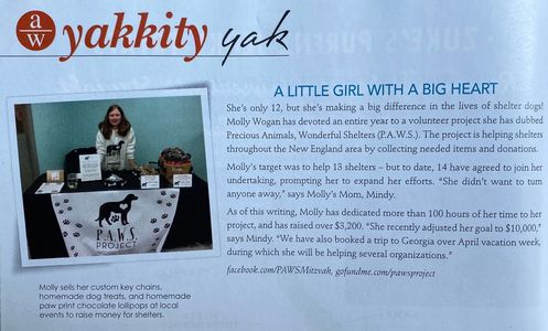 Molly and her PAWS Project were the cover story and a 4 page feature in the magazine in 2017;