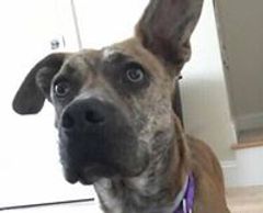 Moon was pulled from Henry County. After we left there for a visit we couldn't stop thinking about him and had to go back. Though Moon had a tough time adjusting to the kennel up north at first he found a family who loves him and is willing to play endless catch with him which is his favorite thing to do.