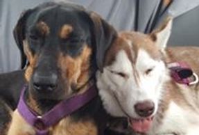 Phoebe (left) was a shy girl pulled from Baldwin County the day she was set to be euthanized. She came to Cape Ann Animal Aid, and then was fostered by the Wogan Family as well. She now enjoys every day playing with her brother Opie and is happy as can be.