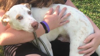 Mama Mary was found under a church - starving and dirty - nursing her 10 puppies. EARLs rescued the entire family and worked with PAWS to sponsor them. Mama Mary now lives in Massachusetts and PAWS gets to see her. And she gets to see one of her puppies all the time too!